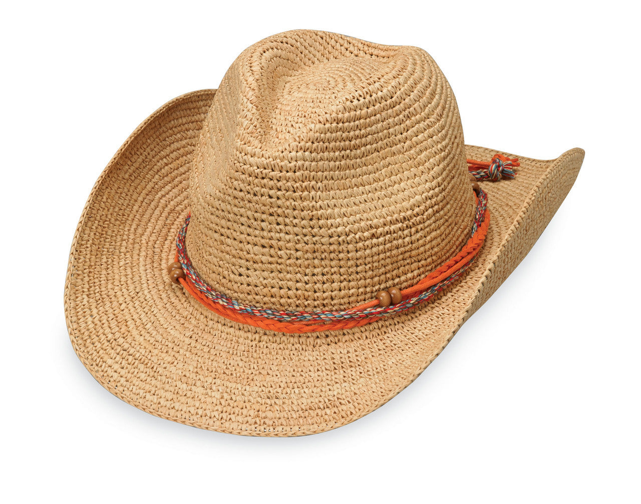 The Cowgirl hat has a 7.6cm / 3" wire-edged brim for perfect shaping and an artsy mixture of leather, coloured string and beads. Ideal for everyday use this hardwearing hand-made hat is made from 100% Raffia.