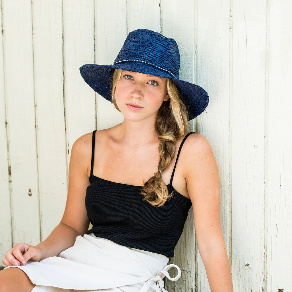 This Madagascan raffia fedora features gleaming silver and gold beads—perfect for any occasion, casual or dressy.