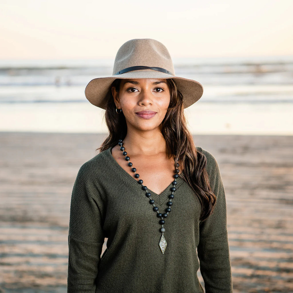 Fall mountain days bring sunshine and cool breezes. The Petite Aspen fedora hat bridges this gap with wool felt UPF 50+ fabric and a wavy sun-shading brim. Enjoy three seasons of style in one of our most versatile women's hats.