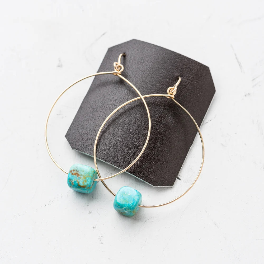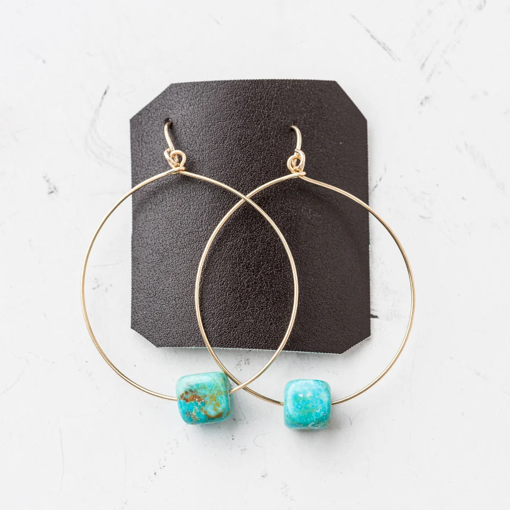 Add a pop of vibrant color with these turquoise cube hoop earrings—striking and chic, they offer a bold yet refined statement of modern elegance.