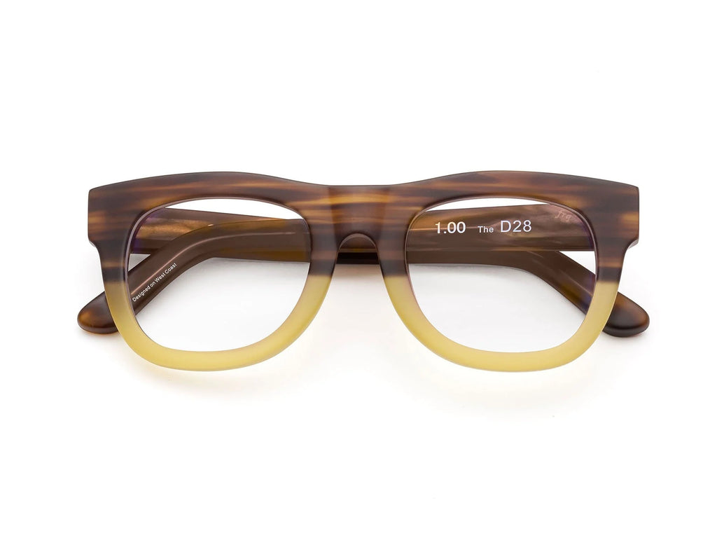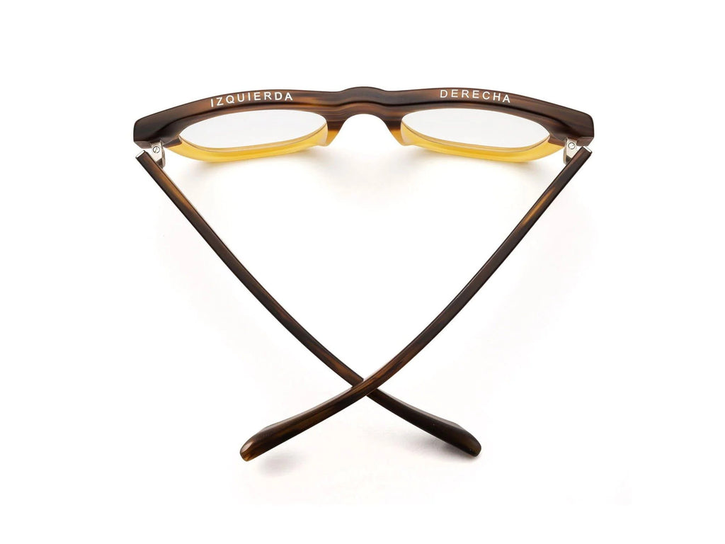 Our D28 is our largest frame that looks great on both women & men looking for a statement - at work or going out at night. These will not fold 4 different ways into a square the size of a Starburst. We have admiration for substance, and our D28 model is a signature piece. Made of 100% Acetate and cut with exact precision. We lazer etched “Izquierda” and “Derecha” across the tops so you don’t forget which side is the left, and which side is the right.