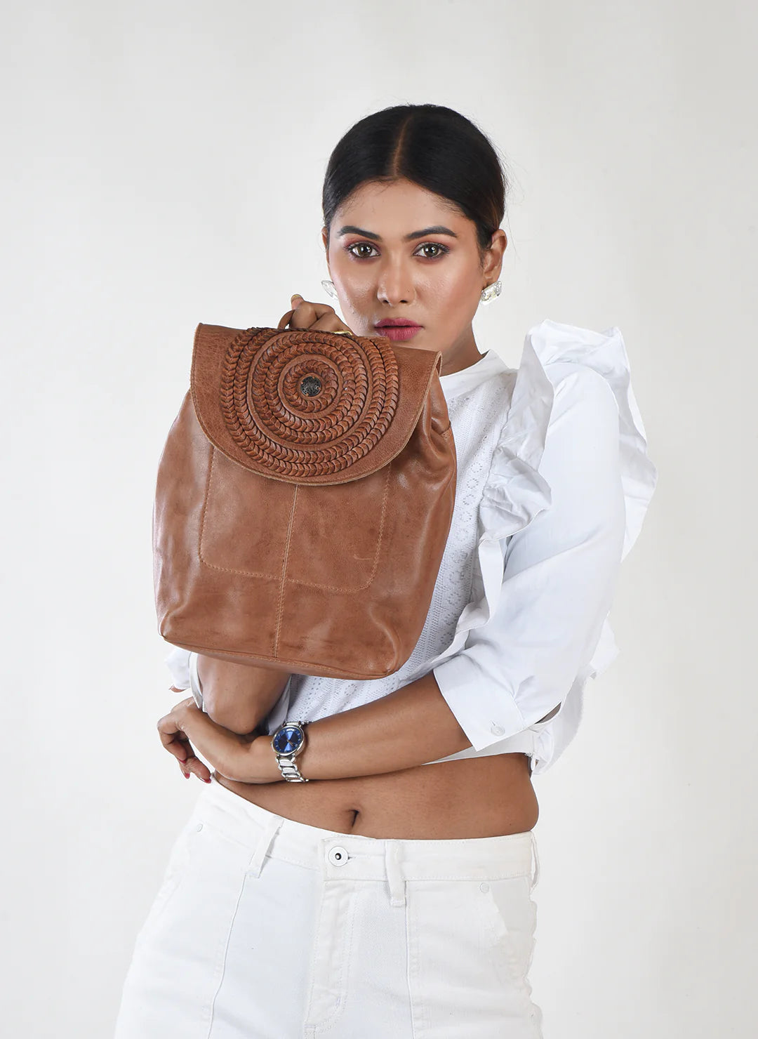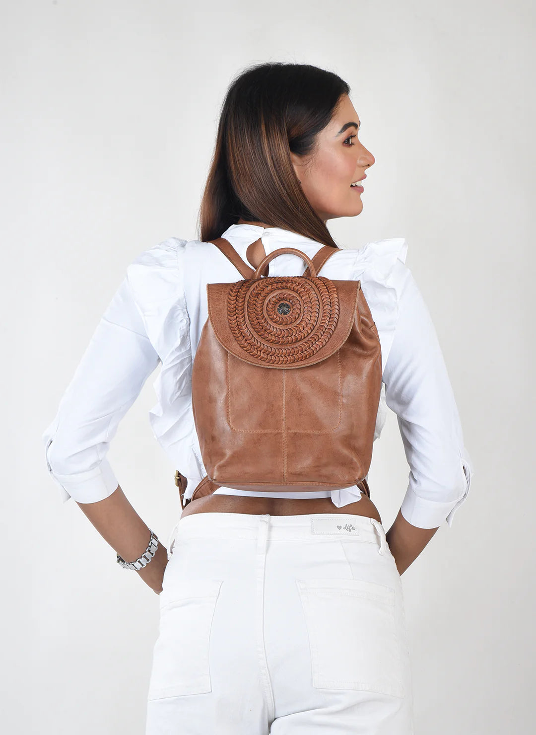 This back pack has a fashionable woven flap that makes it a standout piece. It's both eye-catching and practical!