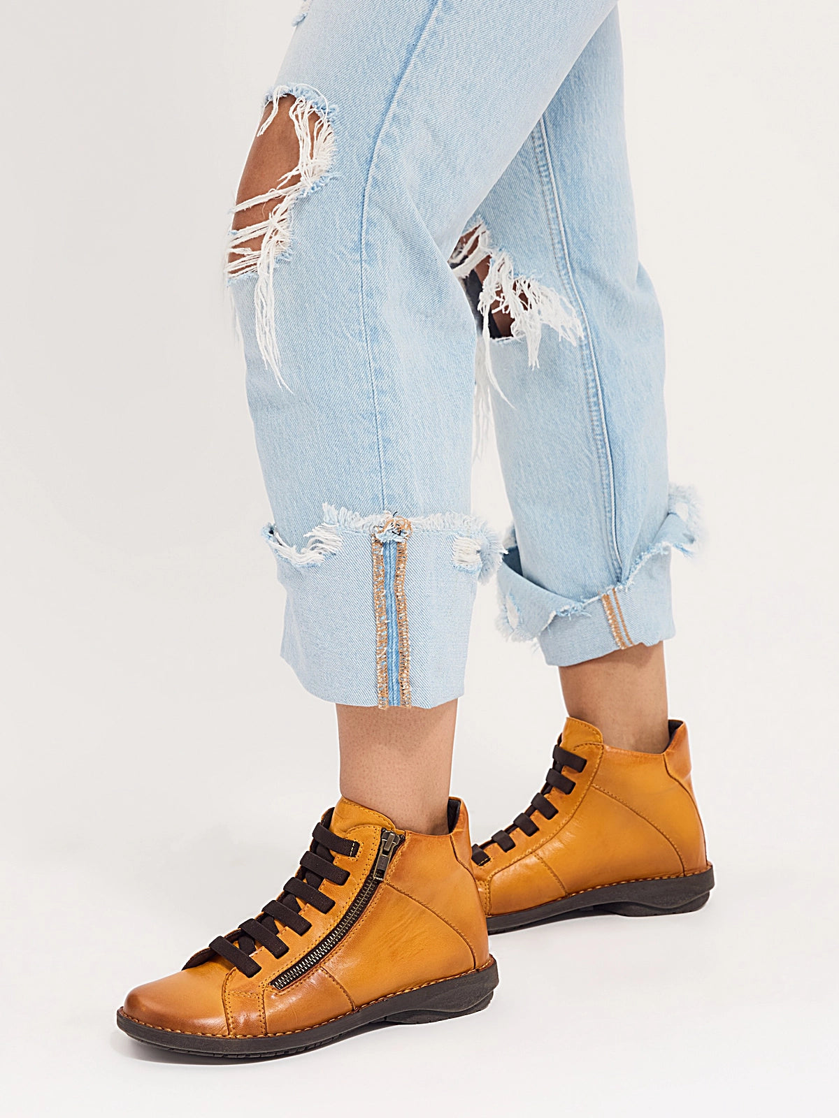 Designed with elastic no-tie laces and convenient zipper closure, slipping into the Miz Mooz Preslee ankle boot is a breeze, making it perfect for your on-the-go lifestyle. Crafted for both fashion and function, this ankle boot radiates fall-chic sophistication and adds an all-around new addition to your wardrobe. Autumn adventures await!