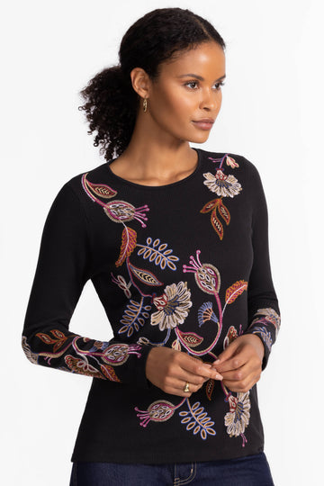 Crafted from a unique cotton blend, the Gineva Long Sleeve Thermal is equal parts cozy and stylish. Featuring a crew neckline and long sleeves, this classic thermal top is embellished with vibrant floral embroidered details on a neutral backdrop. Pair with classic denim and fashion sneakers for a weekend outing.