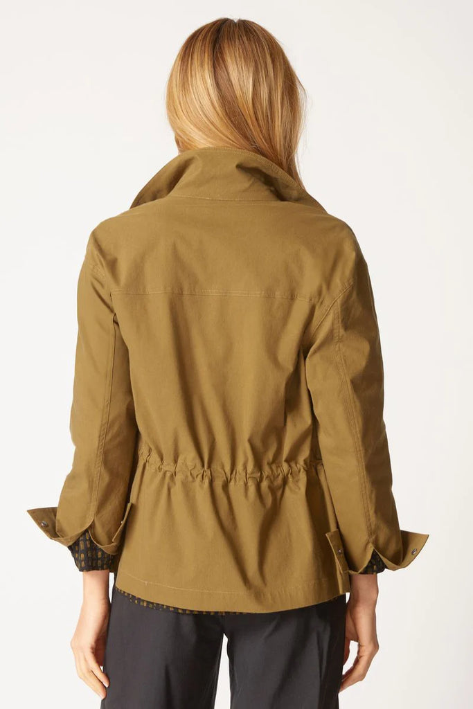 Inside adjustable drawstring waist, zip front with snap overlay for extra protection. Back yoke.