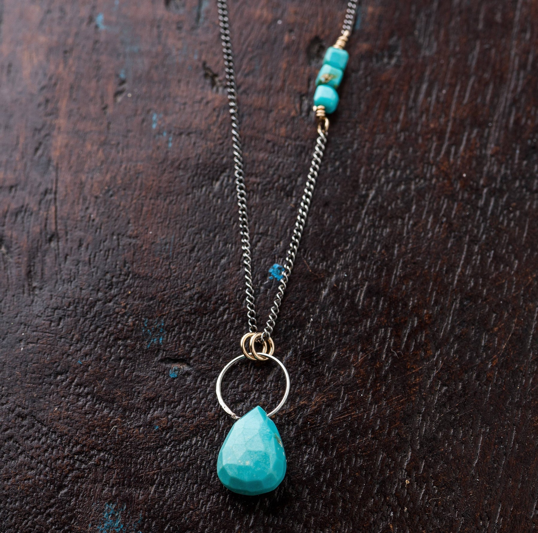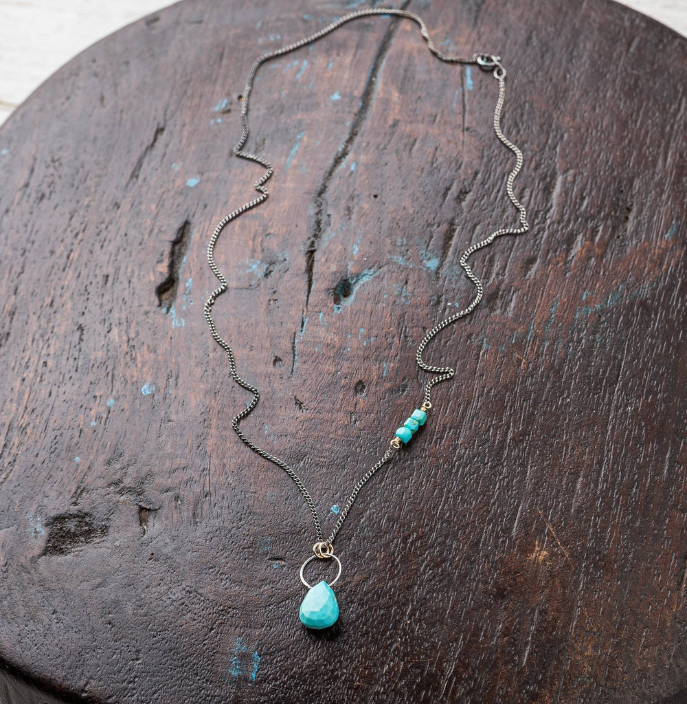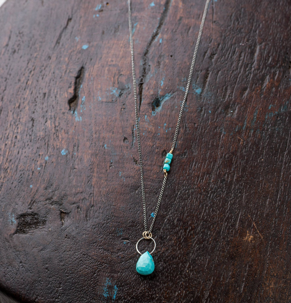 This Gemstone Drop Necklace features a luxurious 18 1/4" sterling silver chain with a secure spring ring clasp. The light-catching Chalcedony, Moonstone, Labradorite, Hydro Quartz and Turquoise is sure to add luxurious sparkle and unique style to each outfit.