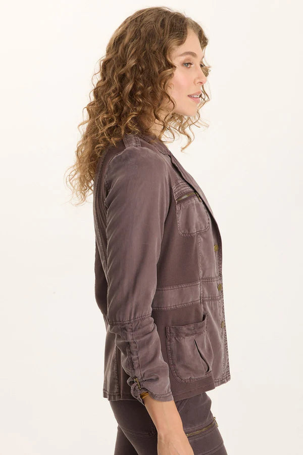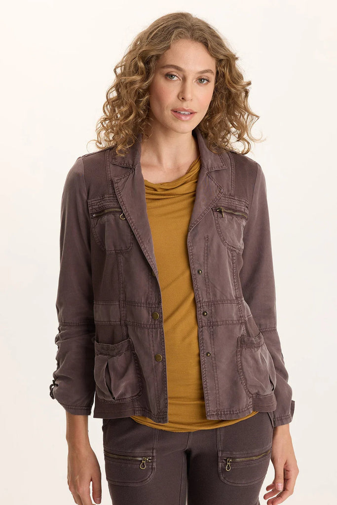 A utility-inspired lightweight jacket, this soft twill style features a split color, brass snap closure and zippered breast pockets, cinchable sleeves, and roomy pockets at the hips. A flattering and curve-grazing yet cozy fit makes Jesper a layering-friendly, go-to piece in your everday wardrobe.