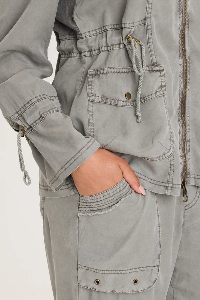 Cinchable waist and sleeves have Hall Jacket on the top of the to-get list. Paired with a four pocket front design and rib back panels for maxium movement, this utility styled jacket is a must have!
