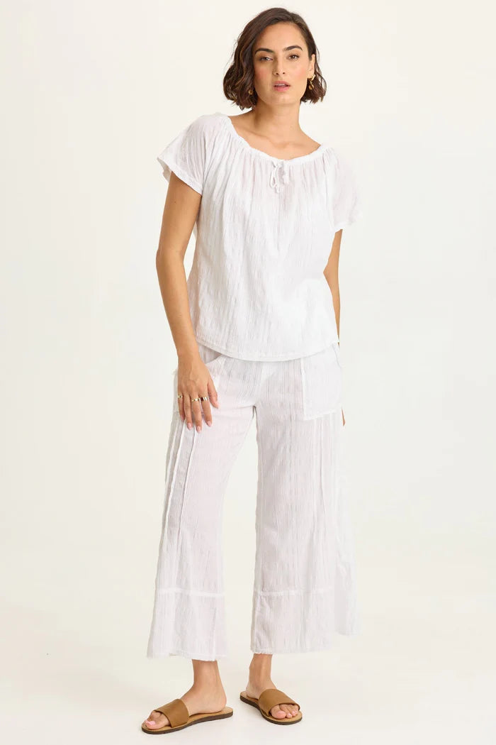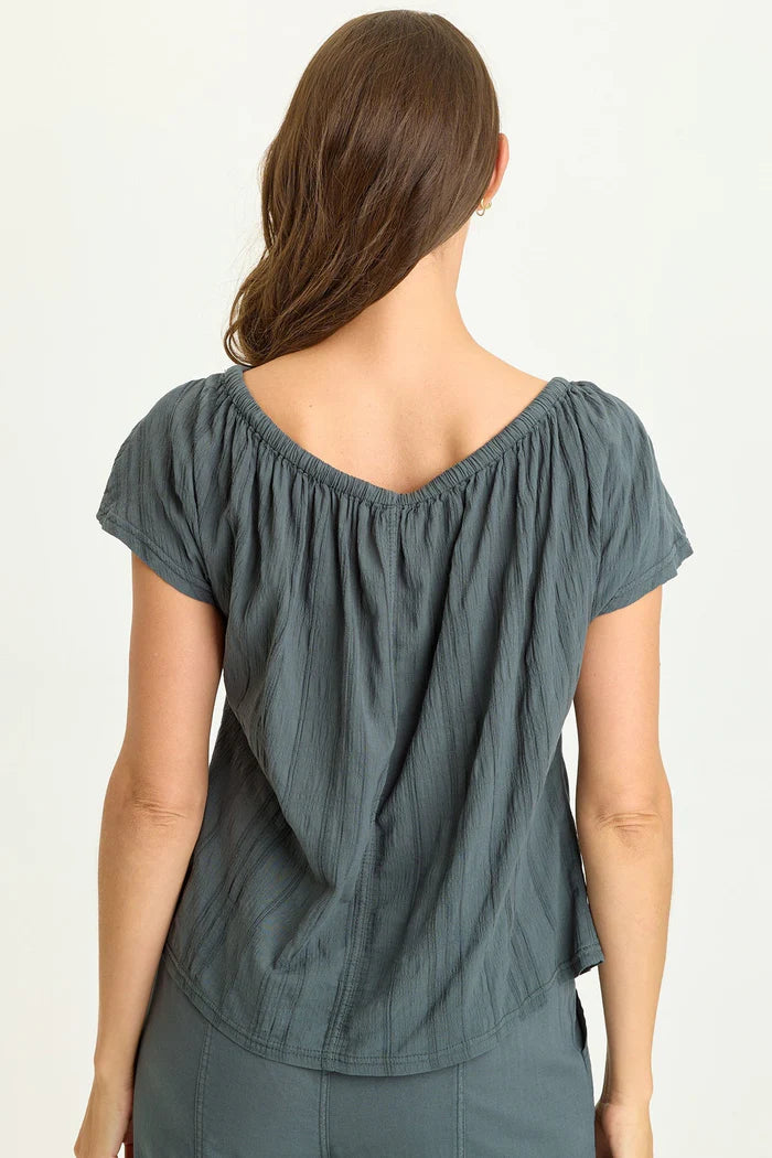 Cinched tie neck and a flutter sleeve are what give Selda its breezy look.